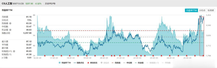 我还特地跟踪了一上科技成长板块的核心持仓中证人工智能主题指数,看下图红框部分,虽然自9月30日以来指数有调整,但估值下降得更快。